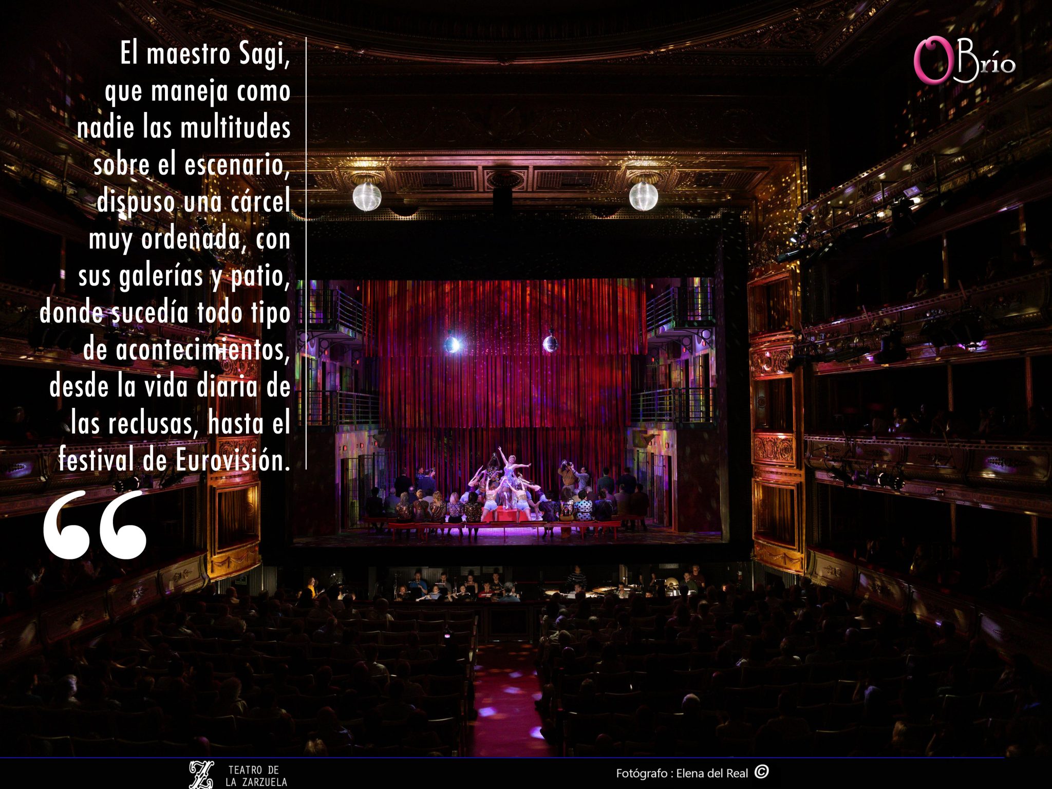 Todos estos elementos musicales se desarrollaban en una elegante escenografía de Daniel Bianco con dirección de Emilio Sagi. El maestro Sagi, que maneja como nadie las multitudes sobre el escenario, dispuso una cárcel muy ordenada, con sus galerías y patio, donde sucedía todo tipo de acontecimientos, desde la vida diaria de las reclusas, hasta el festival de Eurovisión.