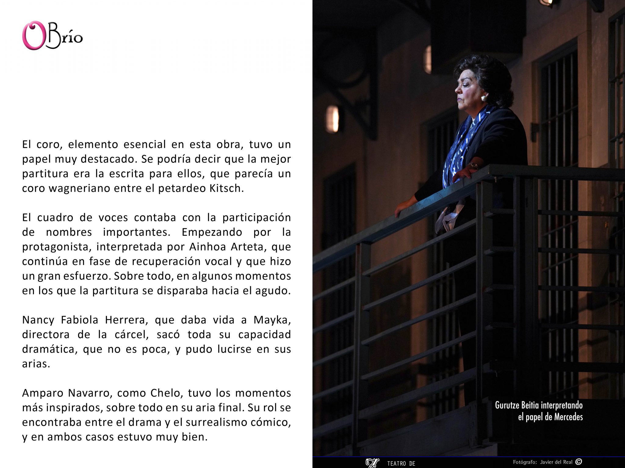 Nancy Fabiola Herrera, que daba vida a Mayka, directora de la cárcel, sacó toda su capacidad dramática, que no es poca, y pudo lucirse en sus arias.