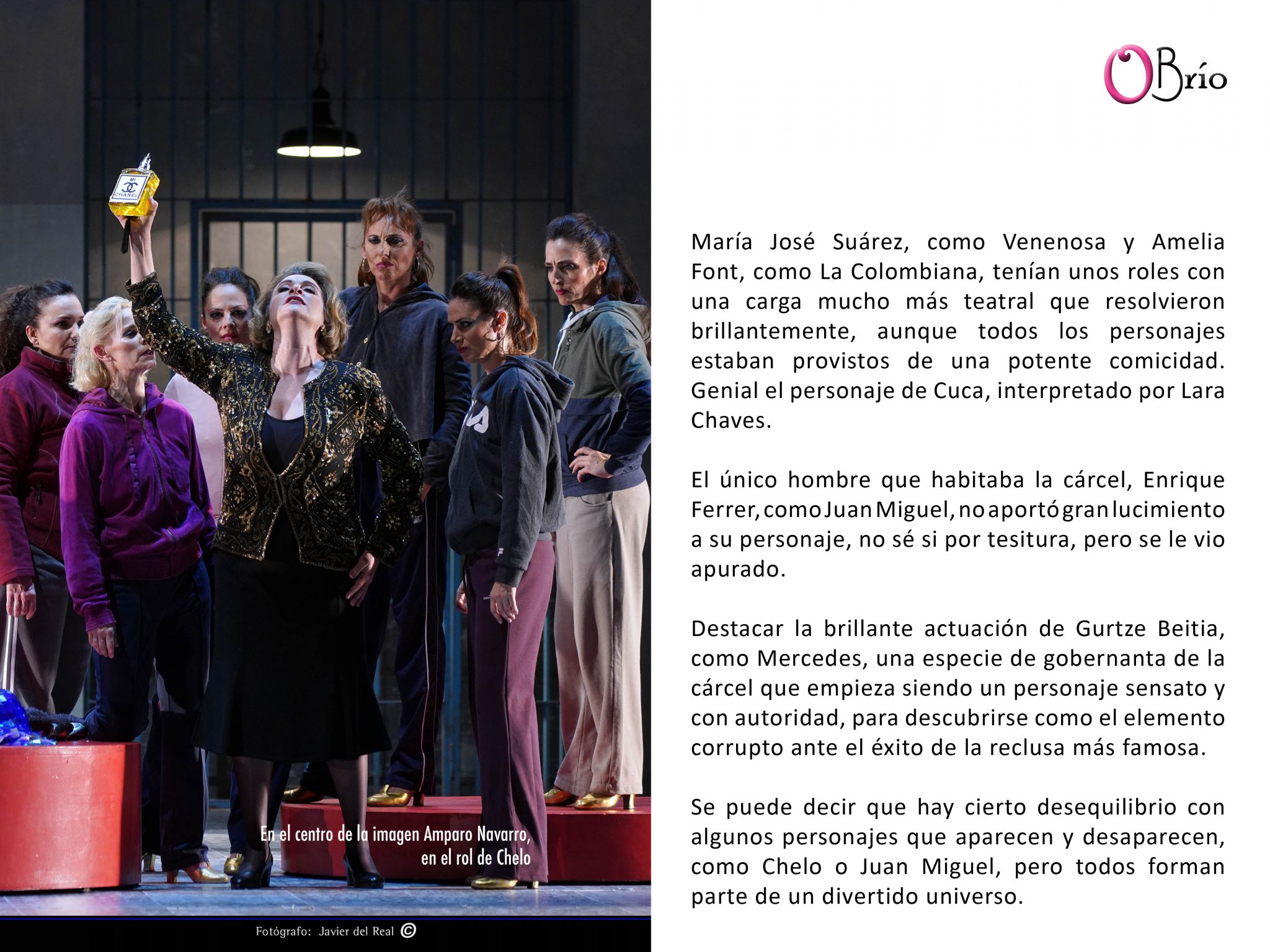 Destacar la brillante actuación de Gurtze Beitia, como Mercedes, una especie de gobernanta de la cárcel que empieza siendo un personaje sensato y con autoridad, para descubrirse como el elemento corrupto ante el éxito de la reclusa más famosa.