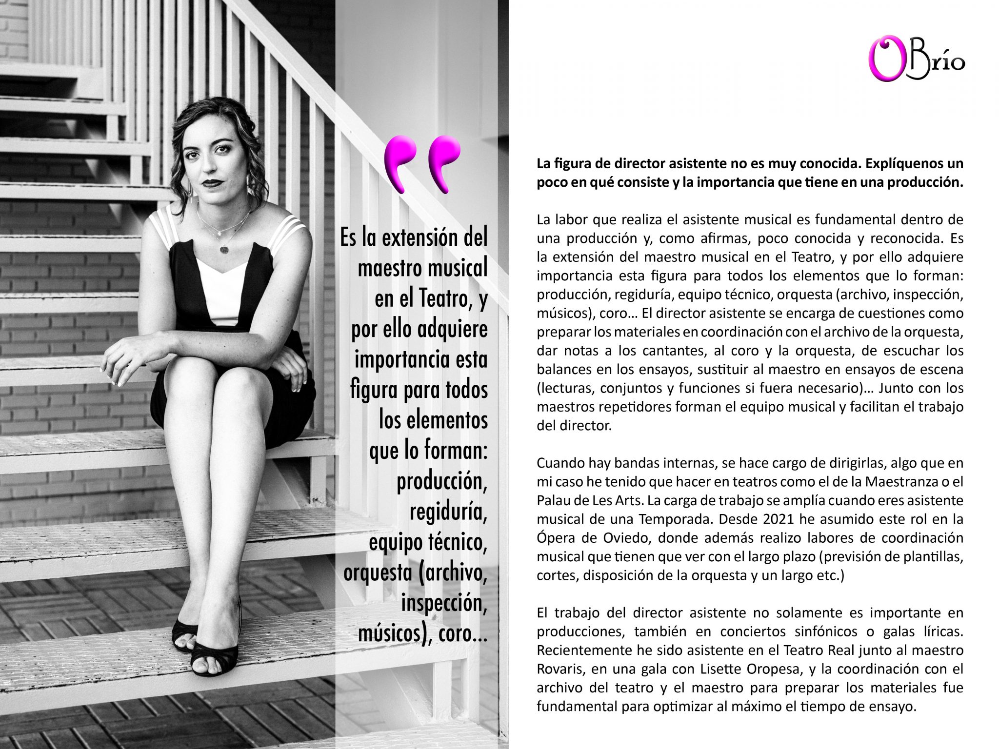 La labor que realiza el asistente musical es fundamental dentro de una producción y, como afirmas, poco conocida y reconocida. Es la extensión del maestro musical en el Teatro, y por ello adquiere importancia esta figura para todos los elementos que lo forman: producción, regiduría, equipo técnico, orquesta (archivo, inspección, músicos), coro… El director asistente se encarga de cuestiones como preparar los materiales en coordinación con el archivo de la orquesta, dar notas a los cantantes, al coro y la orquesta, de escuchar los balances en los ensayos, sustituir al maestro en ensayos de escena (lecturas, conjuntos y funciones si fuera necesario)… Junto con los maestros repetidores forman el equipo musical y facilitan el trabajo del director.