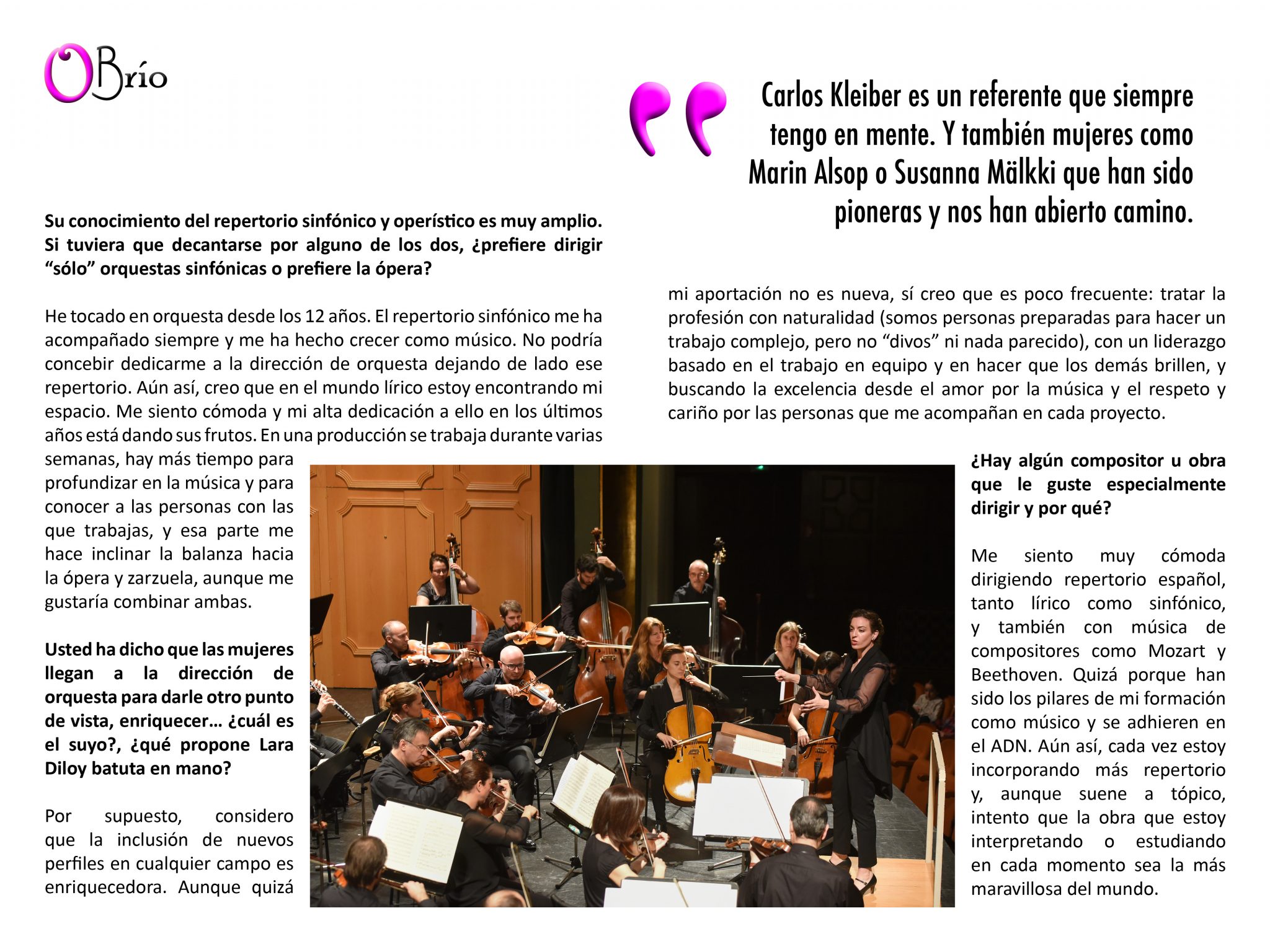 He tocado en orquesta desde los 12 años. El repertorio sinfónico me ha acompañado siempre y me ha hecho crecer como músico. No podría concebir dedicarme a la dirección de orquesta dejando de lado ese repertorio. Aún así, creo que en el mundo lírico estoy encontrando mi espacio. Me siento cómoda y mi alta dedicación a ello en los últimos años está dando sus frutos. En una producción se trabaja durante varias semanas, hay más tiempo para profundizar en la música y para conocer a las personas con las que trabajas, y esa parte me hace inclinar la balanza hacia la ópera y zarzuela, aunque me gustaría combinar ambas.